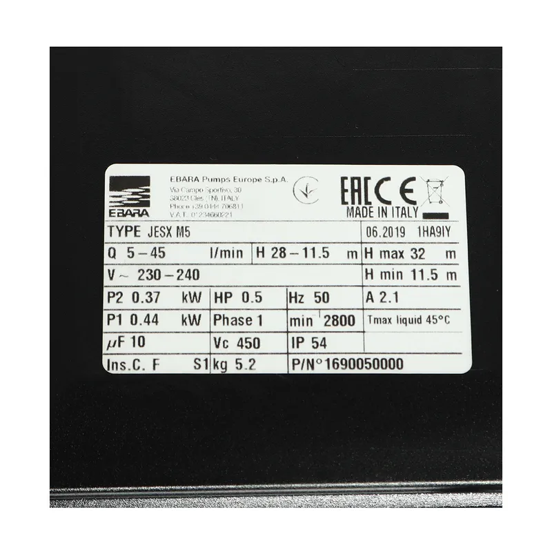 EBARA JESXM-5 SELF-PRIMING SS304 (0.5HP)