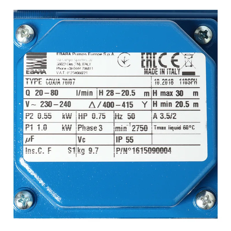 EBARA CDX-70/07 ปั๊ม SS304 ใบพัดเดี่ยว 3 สาย