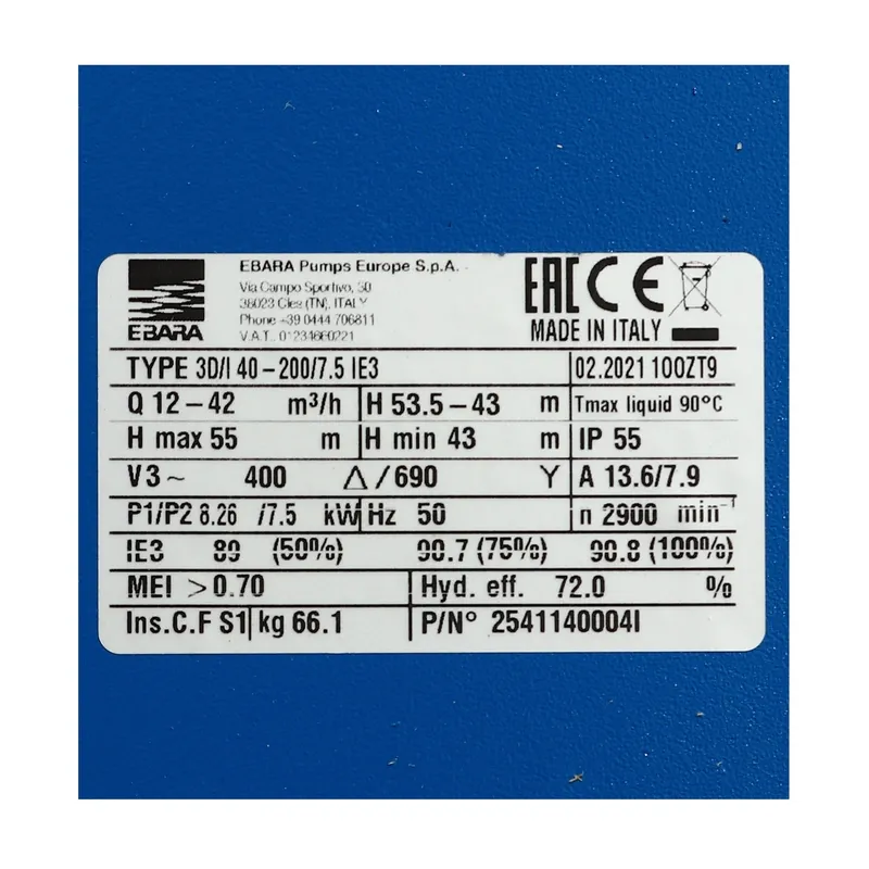3D 40-200/7.5 ปั๊มน้ำหอยโข่งเหล็กหล่อแบบต้องใช้หน้าแปลน