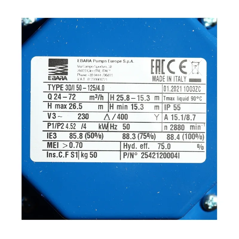 3D 50-125/4.0 ปั๊มน้ำหอยโข่งเหล็กหล่อแบบต้องใช้หน้าแปลน