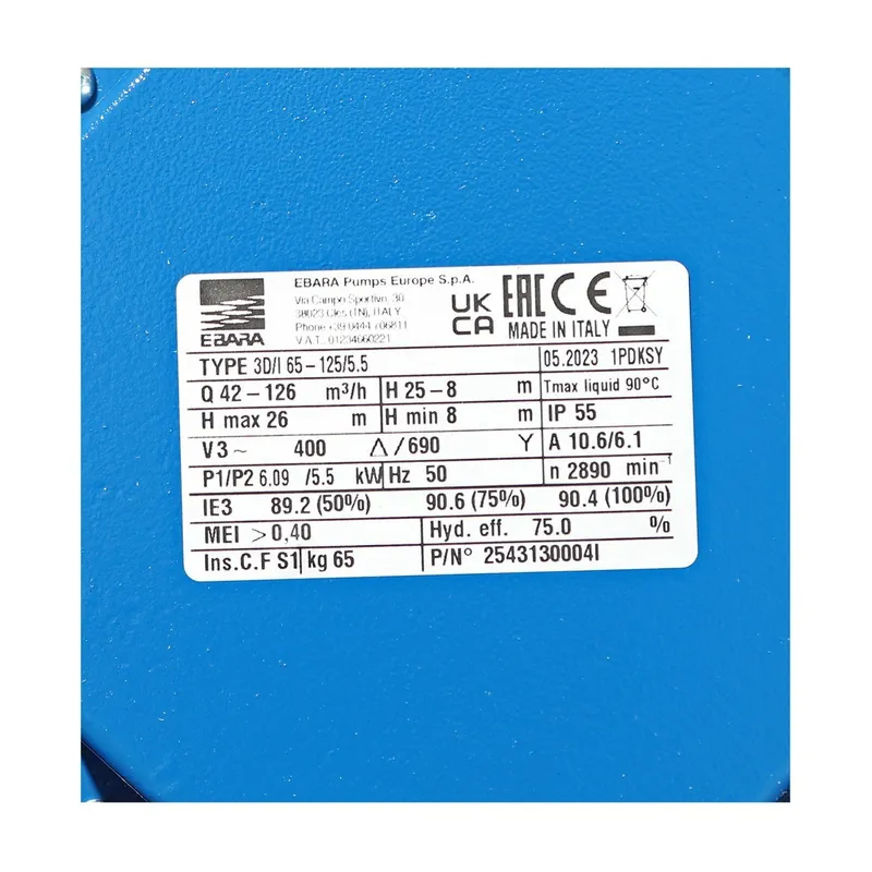 3D 65-125/5.5 ปั๊มน้ำหอยโข่งเหล็กหล่อแบบต้องใช้หน้าแปลน