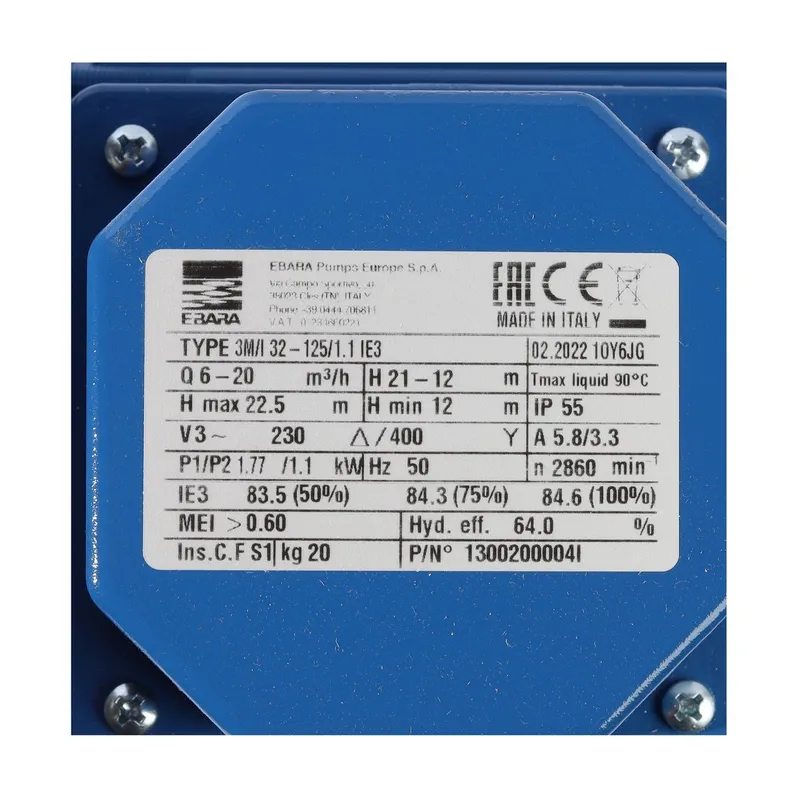 EBARA 3M 32-125/1.1 ปั๊มสแตนเลส – 3สาย