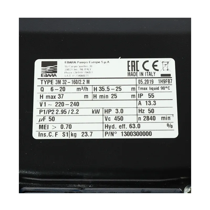 EBARA 3M 32-160/2.2M ปั๊มสแตนเลส