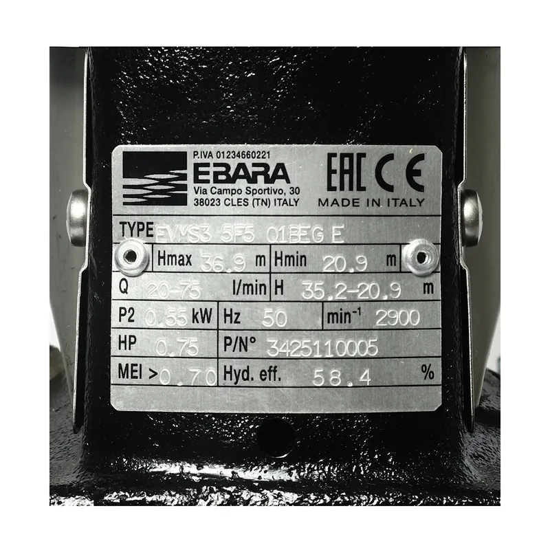 ปั๊มน้ำหลายใบพัดแนวตั้งแบบหน้าแปลน รุ่น EVMS3 5F5/0.55