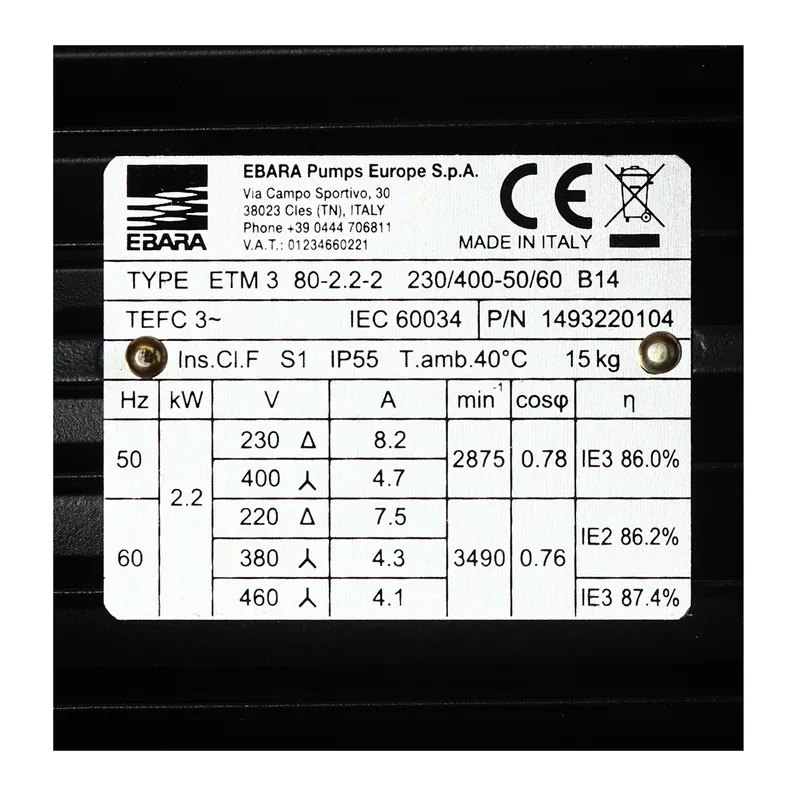 ปั๊มน้ำหลายใบพัดแนวตั้งแบบหน้าแปลน รุ่น EVMS5 11F5/2.2 ตัวเรือนทั้งตัว