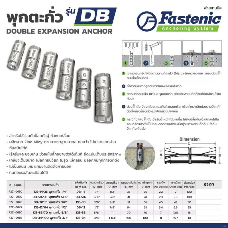 FASTENIC พุกตะกั่ว 5/16″ ยาว 41 มม. รุ่น DB-516