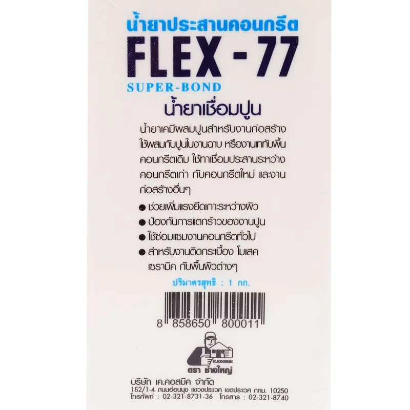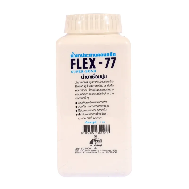 FLEX-77 น้ำยาประสานคอนกรีต 1 กก. รุ่น Super Bond (ตรา ช่างใหญ่) ใช้ผสมกับปูนซีเมนต์และทราย ช่วยประสานคอนกรีตเก่ากับคอนกรีตใหม่ เพื่อการยึดเกาะและเพิ่มความคงทน (เฟลกซ์-77)