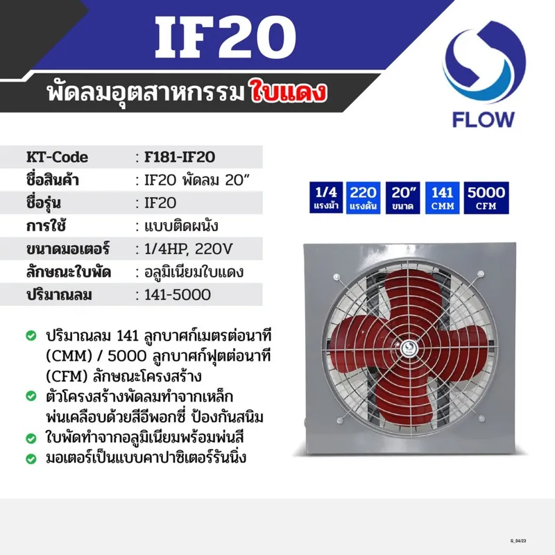 FLOW พัดลม 20″ อุตสาหกรรมใบแดงติดผนัง รุ่น IF20