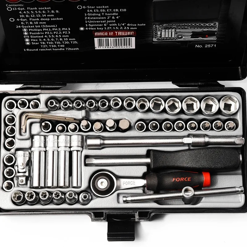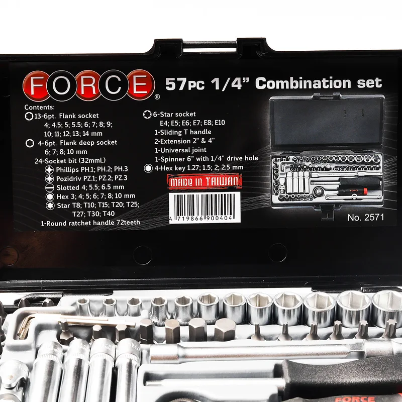 FORCE 2571 ชุดลูกบ็อก 1/4” 6PT+บ็อกเดือย 57 ชิ้น