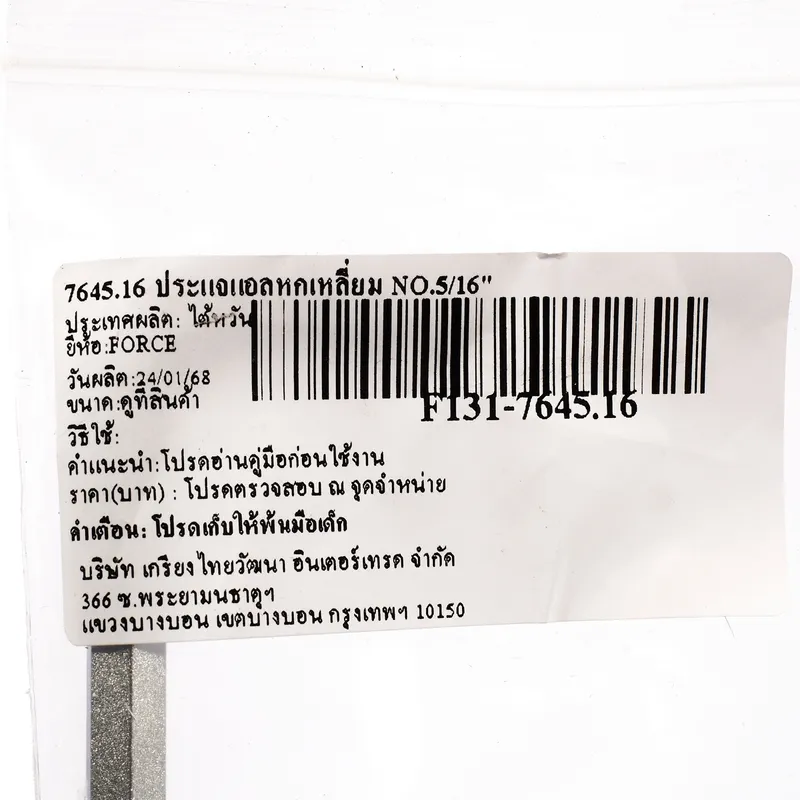 FORCE 7645.16 ประแจแอลหกเหลี่ยม เบอร์ 5/16 นิ้ว