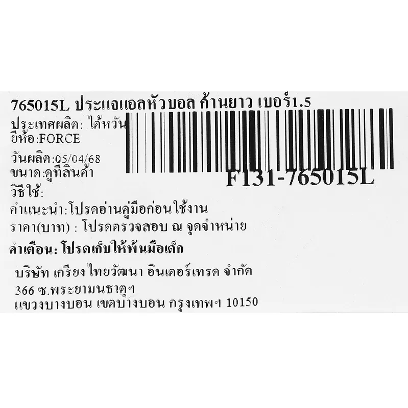 FORCE 765015L ประแจแอลหัวบอล ก้านยาว เบอร์ 1.5