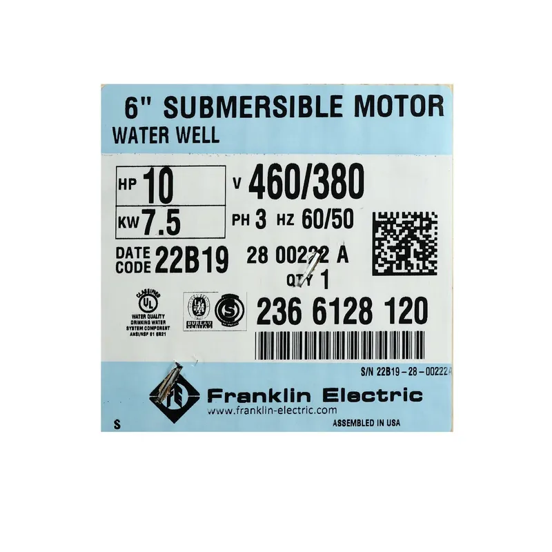 FRANKLIN มอเตอร์ 6″ 10 HP 3เฟส 380V DOL+สายไฟ100″