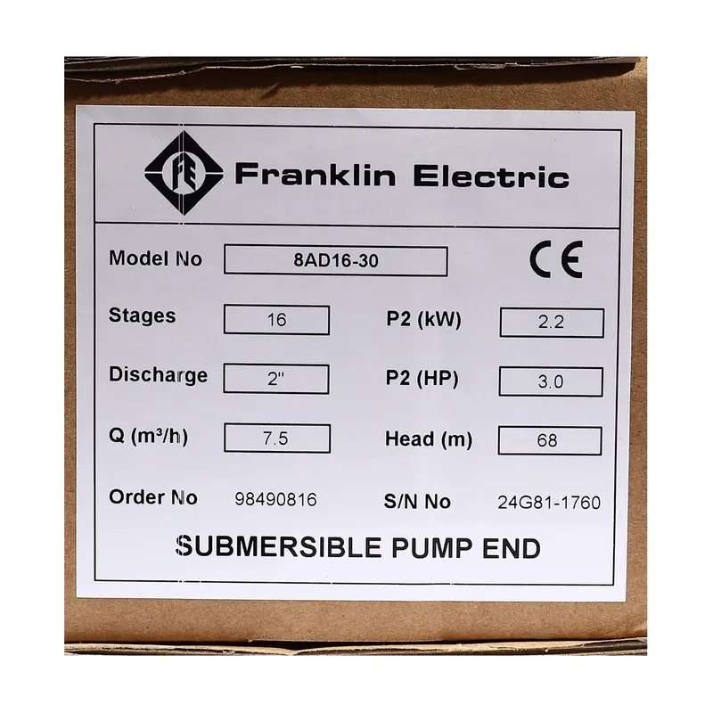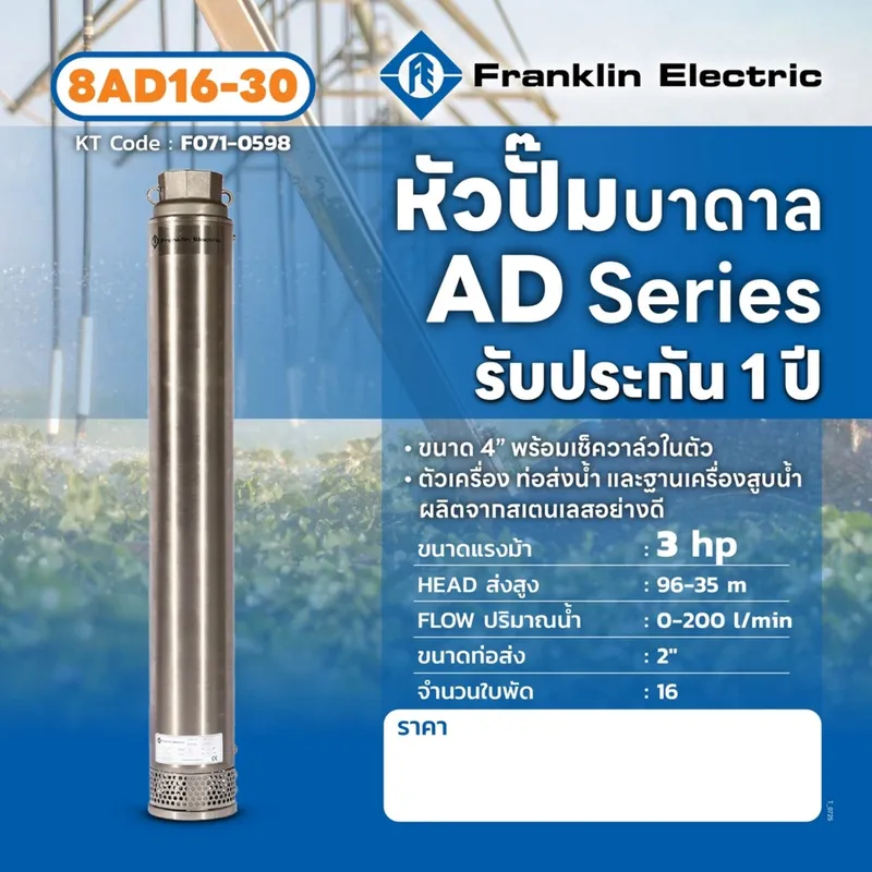FRANKLIN 8AD16-30 ปั๊มบาดาล 4″ 3HP 16 ใบ ท่อ 2″