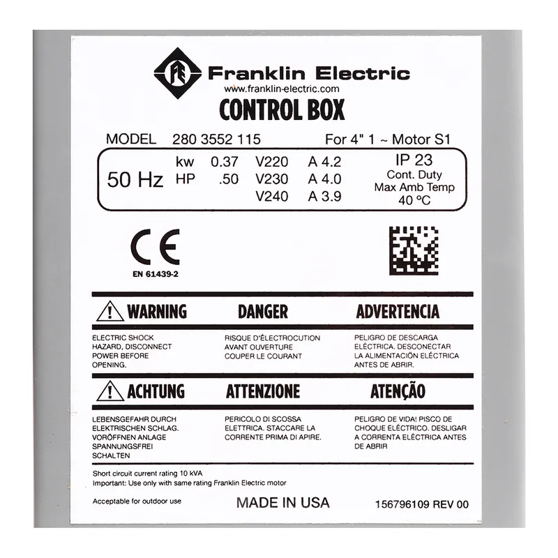 FRANKLIN สวิทซ์คอนโทรล 1/2 HP 220V 50HZ