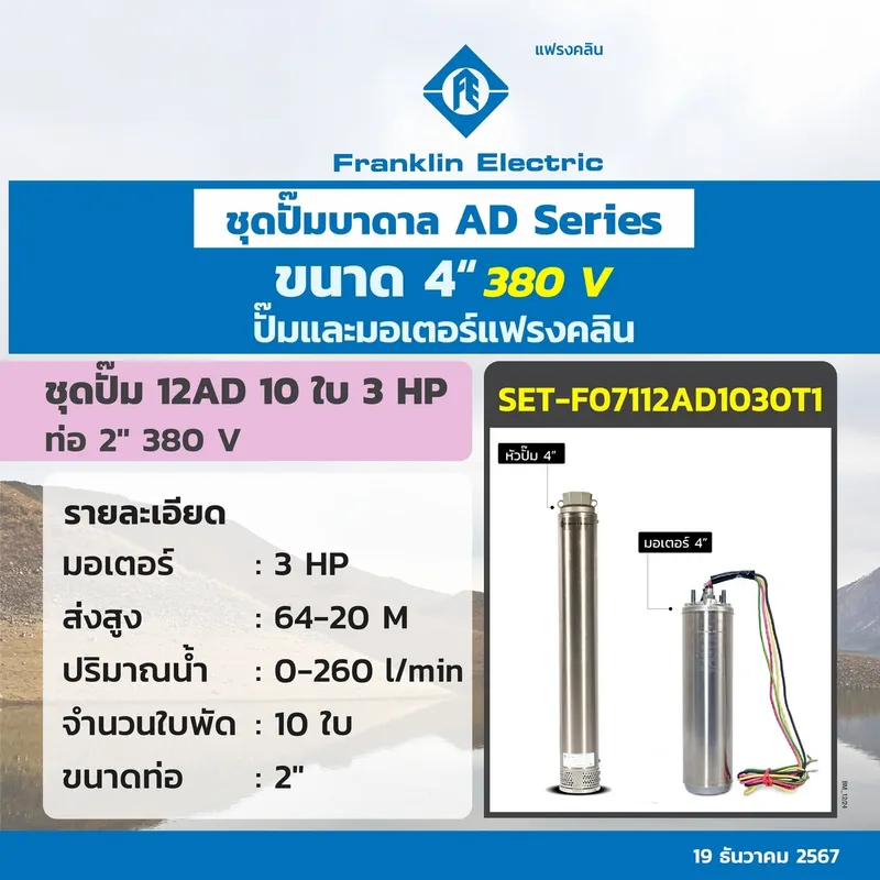 FRANKLIN ชุด 12AD17-50 ปั๊ม+มอเตอร์ 380V.