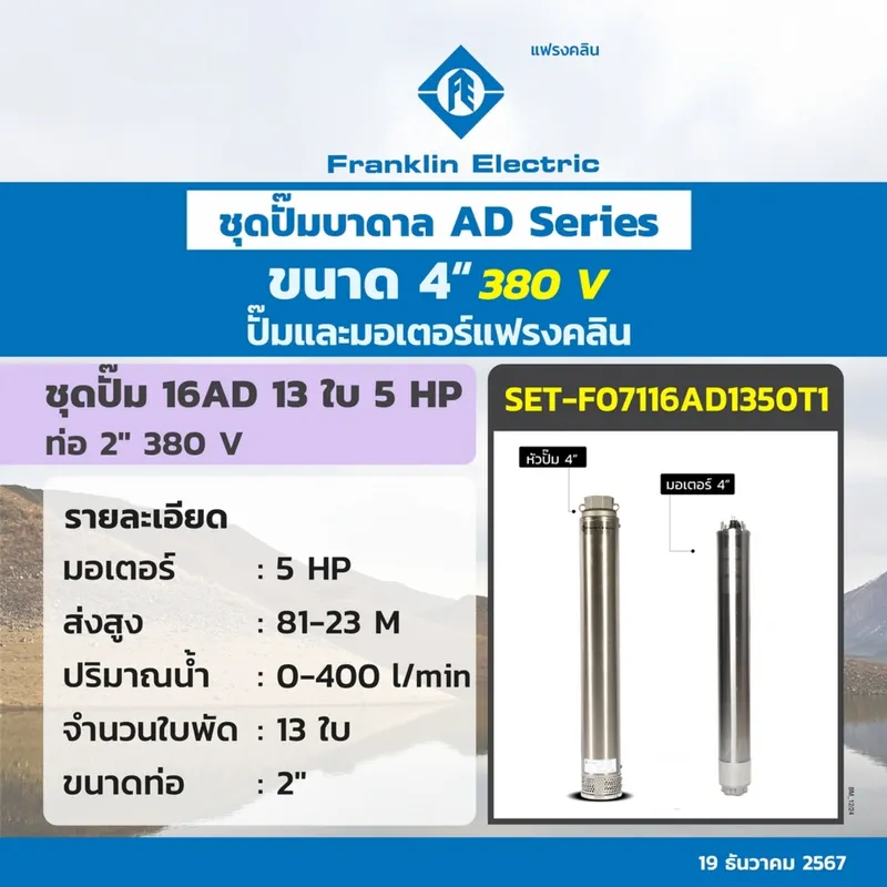 FRANKLIN ชุด 16AD13-50 ปั๊ม+มอเตอร์ 380V.