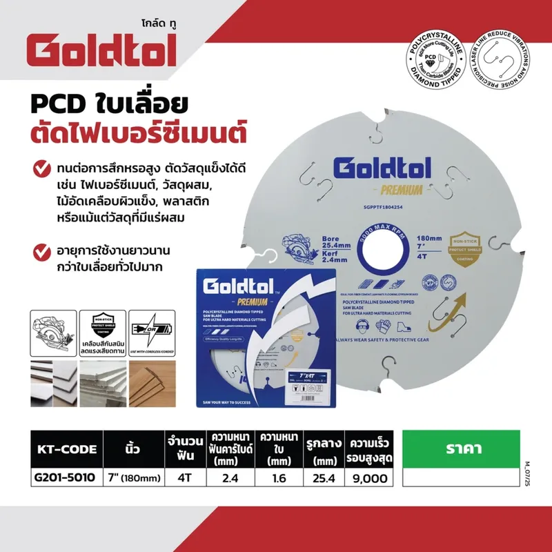 GOLD TOL PCD ใบเลื่อยตัดไฟเบอร์ซีเมนต์ 7″X4T