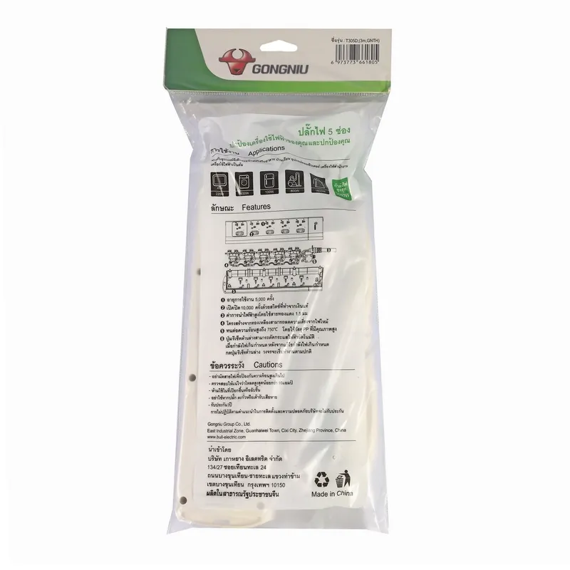 ปลั๊กรางไฟ GONGNIU รุ่น T305D GNTHT (3 เมตร) 5 สวิตซ์ 5 ช่อง