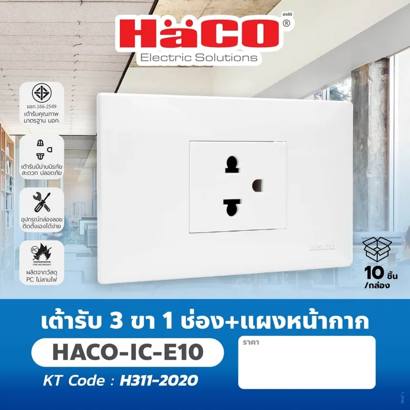 HACO IC-E10 เต้ารับ 3 ขา 1 ช่อง+แผงหน้ากาก