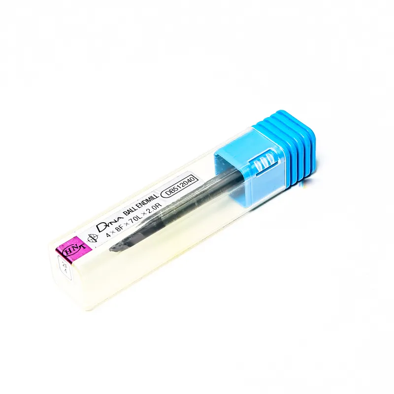 ดอกเอ็นมิลหัวบอล (Ball Nose End Mill) HANA รุ่น DB512 ขนาด 4.0 มม. ออกแบบมาเพื่องานกัดขึ้นรูป 3 มิติ (3D Machining) ผิวโค้ง และพื้นที่ลาดเอียง ด้วยวัสดุคาร์ไบด์คุณภาพสูงและการเจียรแบบ CNC ที่แม่นยำ