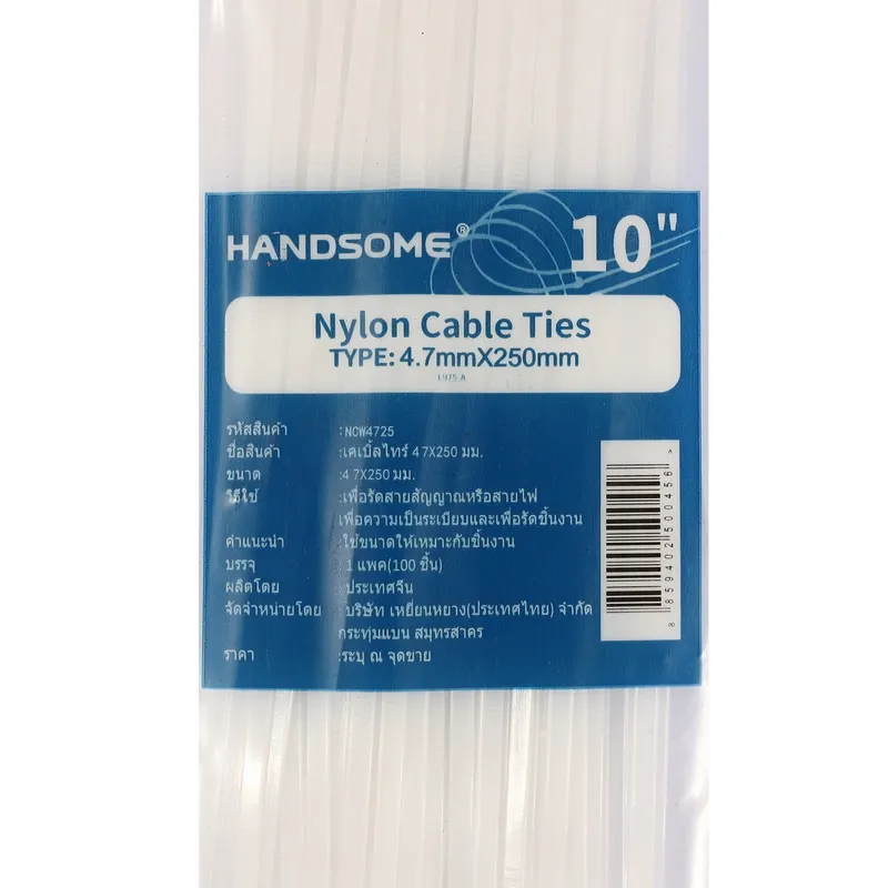 HANDSOME เคเบิ้ลไทร์ 10 นิ้ว สีขาว ขนาด 4.7 x 250 มม. รุ่น NCW4725 ใช้รัดสายไฟ Nylon Cable Tie 1 ห่อ 100 เส้น