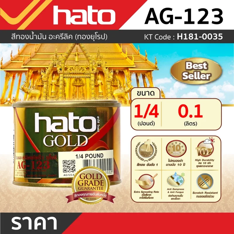 HATO European Gold Paint AG-123 | สีทองสูตรน้ำมันคุณภาพสูงสุด ประกายทองสว่างชัดระดับพรีเมียม