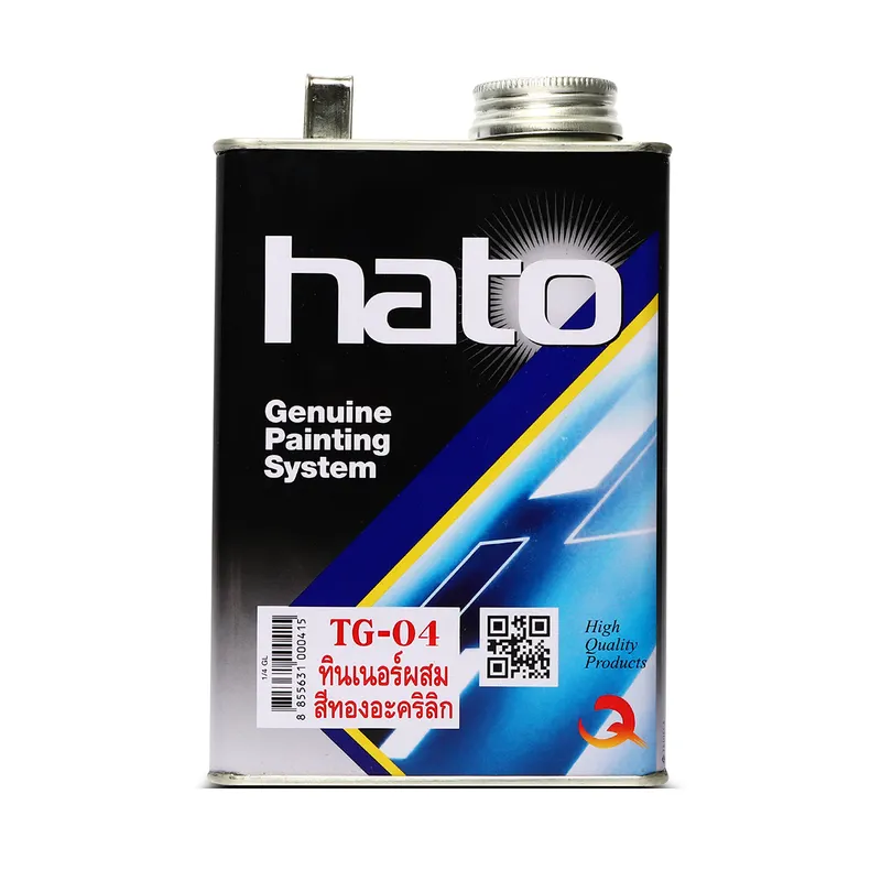 ทินเนอร์ผสมสีทองฮาโต้ รุ่น TG-04 ผลิตจากตัวทำละลายคุณภาพสูง สูตรพิเศษสำหรับสีทองคำ ช่วยปรับความเหนียวของสีให้เหมาะกับการทา และรักษาประกายทองให้สวยงาม