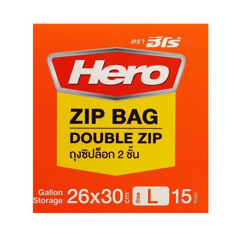 HERO ถุงซิปดับเบิ้ลล็อค 26X30 ซม. (15 ใบ)