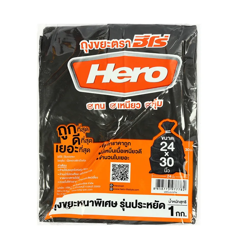 HERO ถุงขยะสีดำมาตรฐานหูผูก 30X40″ (20 ใบ)