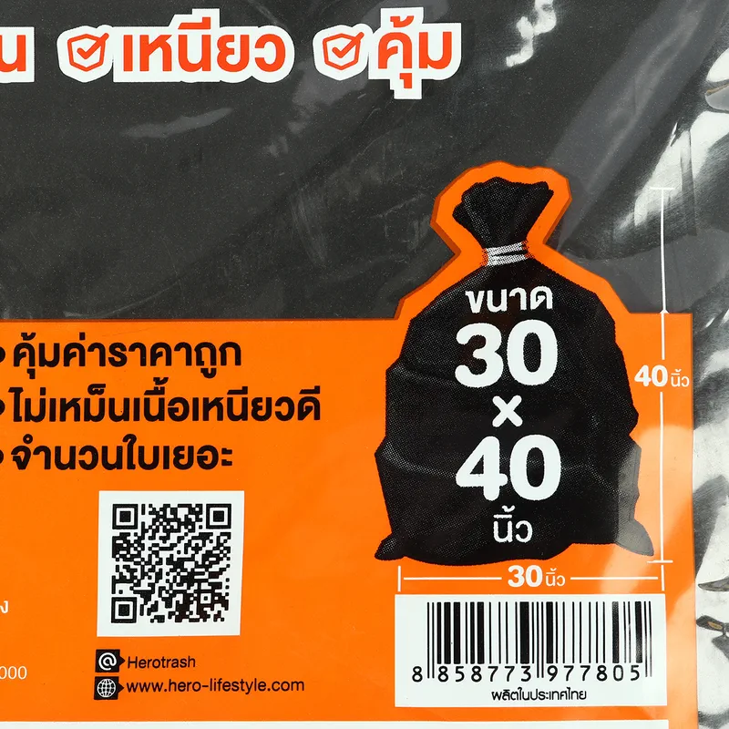 ถุงขยะ HERO (ฮีโร่) รุ่นประหยัด 1 กิโลกรัม แบบหนา ขนาด 30X40 นิ้ว หนา 53 ไมครอน (0.053 มม.)