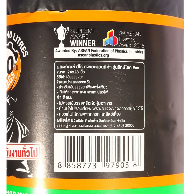 - วัสดุ: 2. นำเม็ดพลาสติกคุณภาพมาผลิตถุงขยะ HERO ECO BAGS