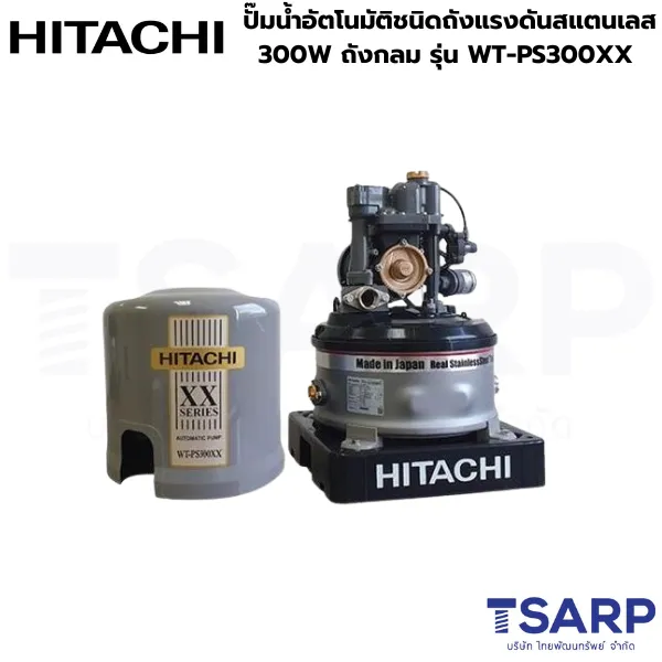 HITACHI ปั๊มน้ำอัตโนมัติชนิดถังแรงดันสแตนเลส 300W ถังกลม รุ่น WT-PS300XX