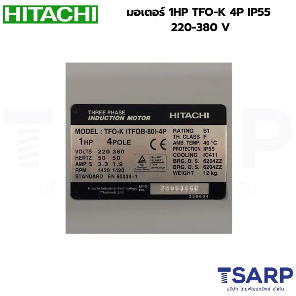 HITACHI มอเตอร์ 1HP TFO-K 4P IP55 220-380 V