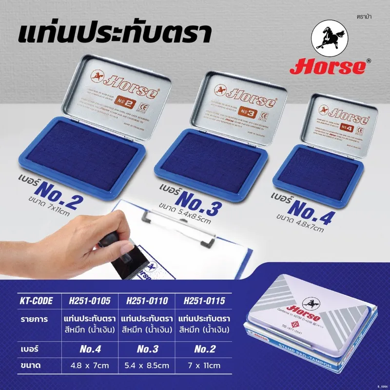 แท่นประทับตรา หมึกสีน้ำเงิน ตราม้า เบอร์ 2