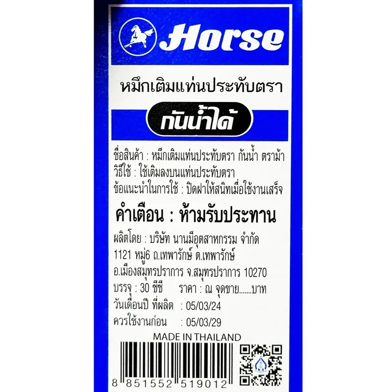 - ใช้ร่วมกับหมึกเติมแท่นประทับเปล่า ตราม้า