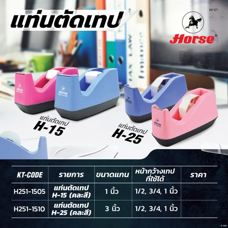 แท่นตัดเทป แกน 3 นิ้ว ตราม้า รุ่น H-25 (คละสี)