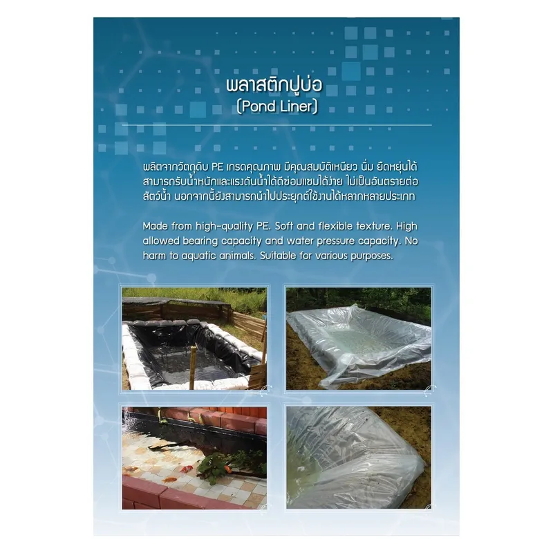 - การใช้งาน: ใช้สำหรับปูบ่อน้ำ ปูบ่อ
