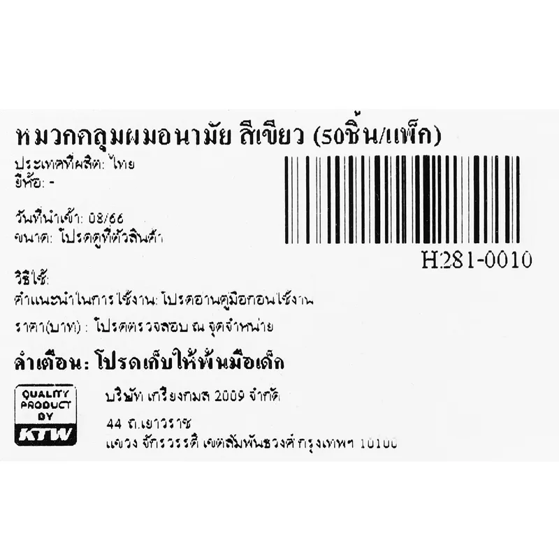 หมวกคลุมผมอนามัย HYGUARD สีเขียว