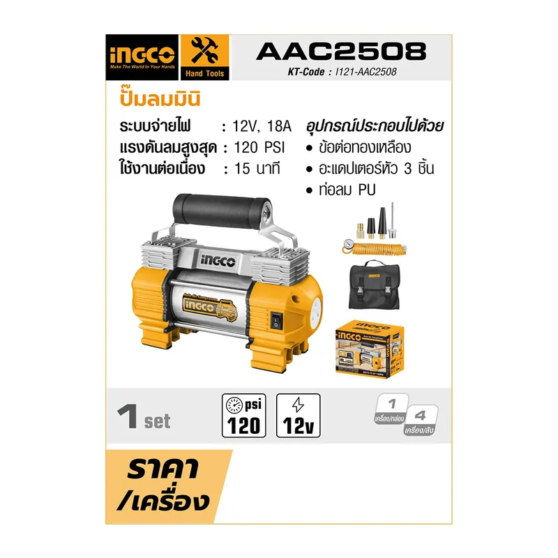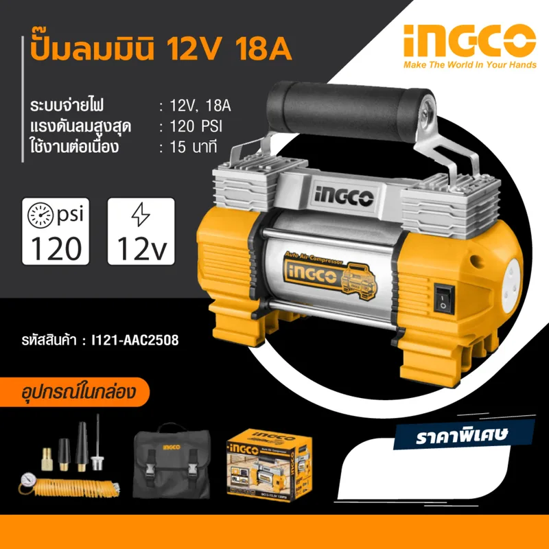 ปั๊มลมมินิ INGCO รุ่น AAC2508 ระบบจ่ายไฟ 12 โวลต์