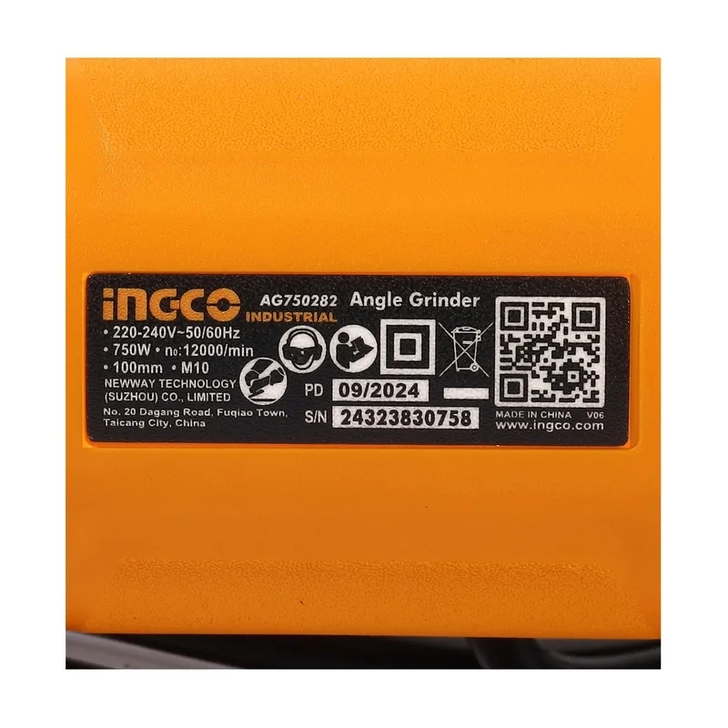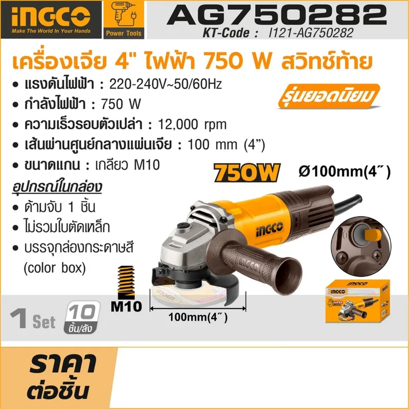 เครื่องเจียร์ไฟฟ้า 4 นิ้ว INGCO กำลังไฟ 750 วัตต์ รุ่น AG750282