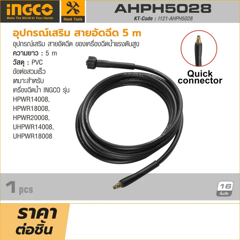 อุปกรณ์เสริม สายอัดฉีด ของเครื่องฉีดน้ำแรงดันสูง INGCO รุ่น AHPH5028