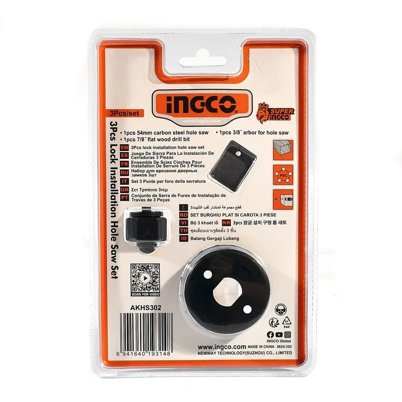 INGCO ชุดดอกสว่านเจาะลูกบิดประตู 3 ชิ้น/ชุด รุ่น AKHS302