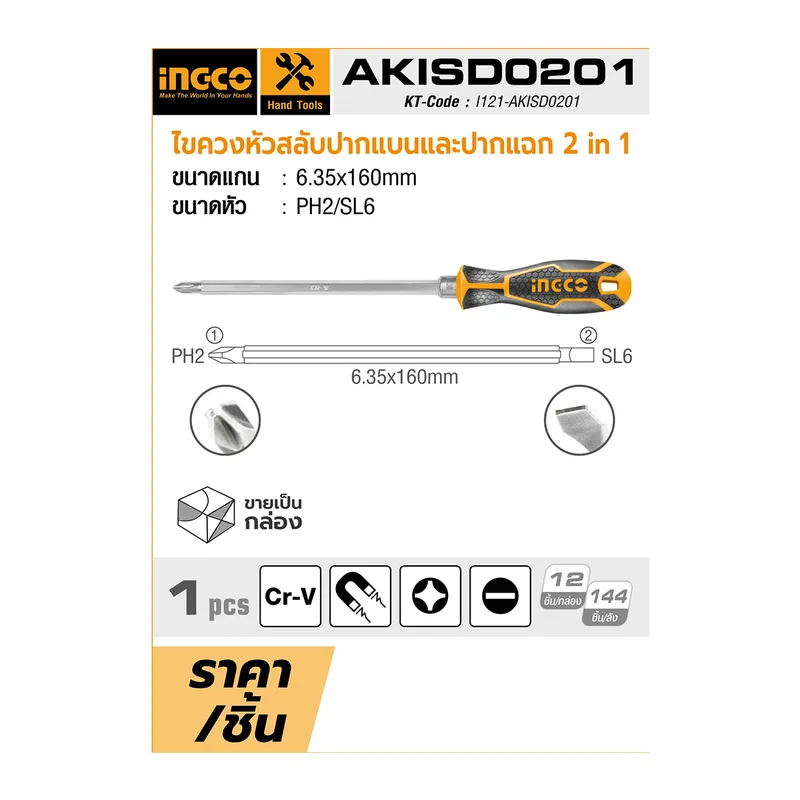 INGCO ไขควงหัวสลับปากแบนและปากแฉก 2in1 รุ่น AKISD0201