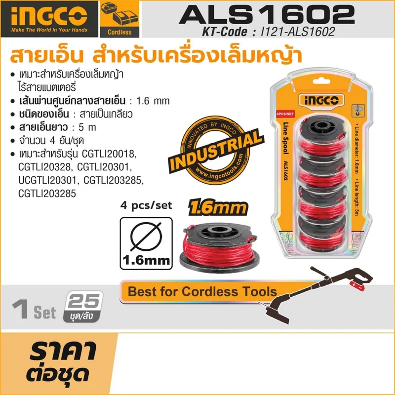 INGCO สายเอ็น สำหรับเครื่องเล็มหญ้า รุ่น ALS1602