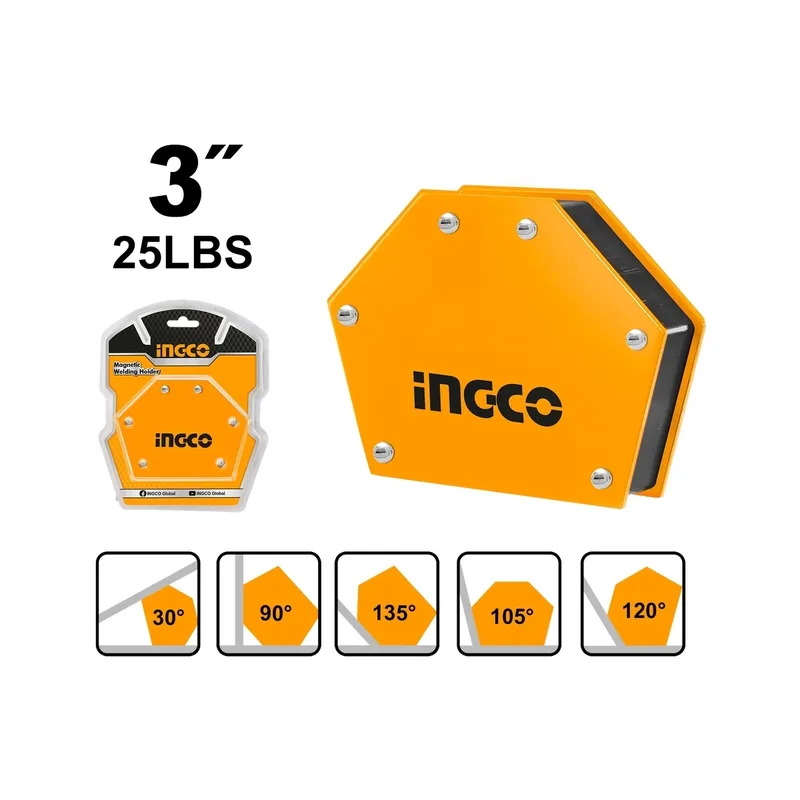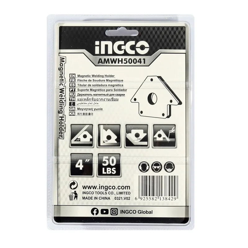 แม่เหล็กจับฉาก (อิงโก) INGCO ขนาด 4 นิ้ว รุ่น AMWH50041 เป็นแม่เหล็กขนาด 4 นิ้ว ทำมุมได้ 45° / 90° / 135° เหมาะสำหรับงานเชื่อมโลหะเมื่อต้องการเข้ามุมฉากต่างๆ
