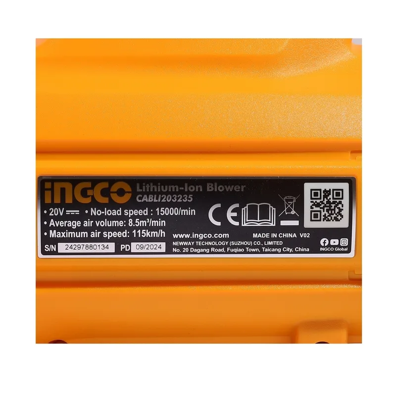 INGCO เครื่องเป่าใบไม้ไร้สาย 20V พร้อมแบต 2.0Ah x1 ก้อน รุ่น CABLI203235