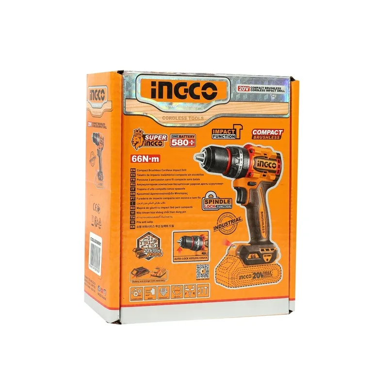 INGCO สว่านกระแทกไร้สาย Brushless 20V แรงขัน 66 N.m (Body Only) รุ่น CIDLI206681