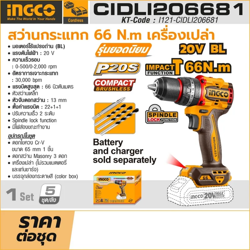 สว่านกระแทก 20V INGCO รุ่น CIDLI206681
