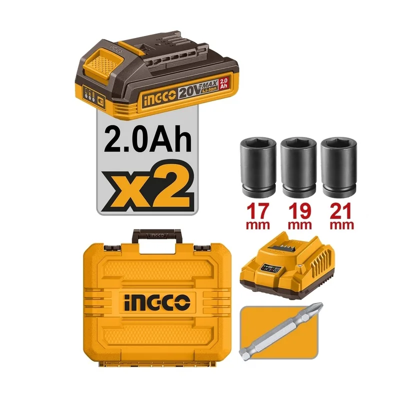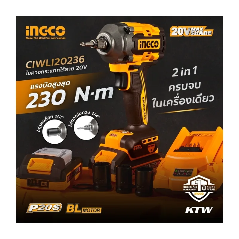 ไขควงกระแทก & บล็อค 2IN1 20 โวลต์ 1/2 นิ้ว INGCO รุ่น CIWLI20236 (รวมแบตเตอรี่และแท่นชาร์จ)