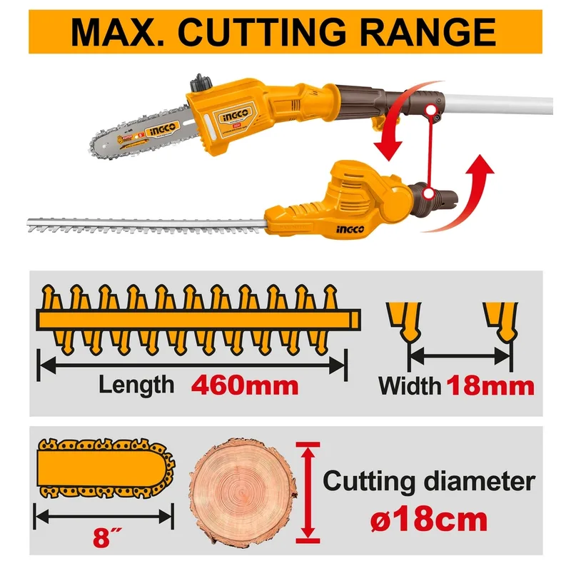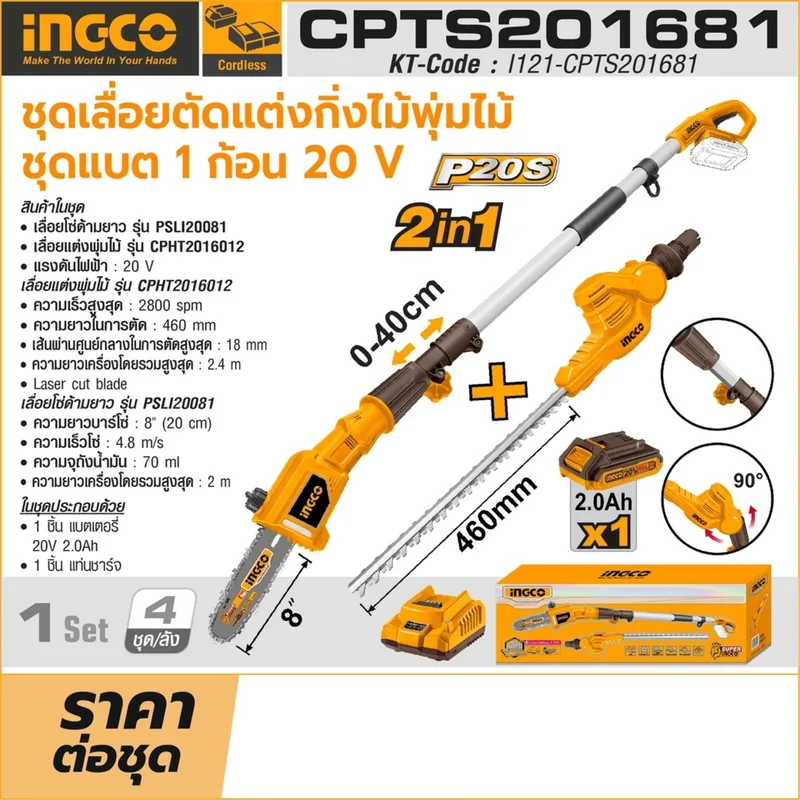 ชุดเลื่อยตัดแต่งกิ่งไม้ พุ่มไม้ไร้สาย INGCO รุ่น CPTS201681